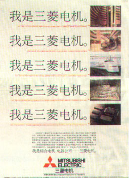 专家评语: 广告以“我是三菱电机”主体语言,诉求该企业不仅是生产空调与电梯,而是综合电机、电器公司。画面通过一组产品照片说明三菱电机的产品具有尖端性。同时独特地采用主题更具记忆力度。整个广告画面编排新颖醒目又稳重大方,充分体现了企业的气质与品位。