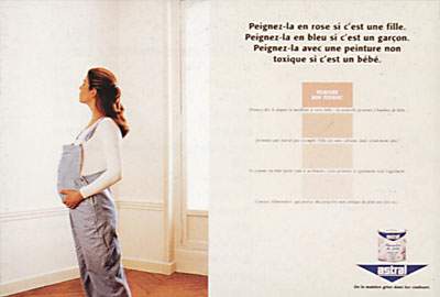 是女孩的话,用粉红色涂料;是男孩的话,用蓝色涂料;是婴儿的话,用无毒副作用的涂料。