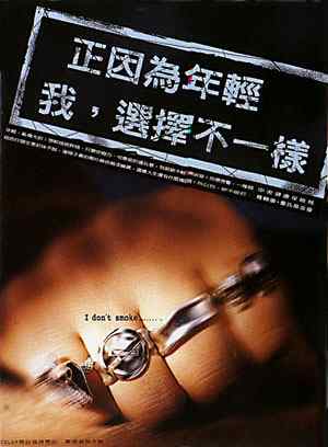 年轻,蛮伟大的!想干啥就干啥,只要你够力。可是吸烟这玩意,我就绝不轻易妥协!你想想看,一身超中央健康保险局炫的行头全是烟味不说,连身子里的两片肺也乌漆嘛黑,这样人生还有什么搞头!所以我,绝不吸烟。
