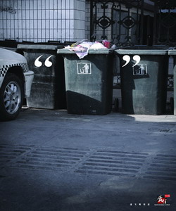 评委评语: 这是一组我很喜欢的作品,当然是喜欢它的幽默、机智。“最佳平面”、“最佳文案”我都投给它。这文案在哪里?在引号里,暗的引号里的物体和场所里有文案。八哥在说什么?大家一看便知道。中国人缺乏幽默感,长期授受说教式的公益广告,而我要告诉视众的是:这才是最好的公民教化。 (著名平面设计师、国际平面设计师协会会员 王粤飞)