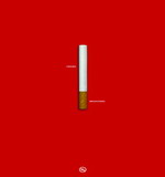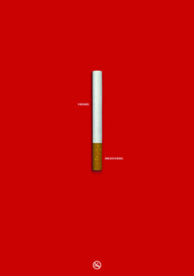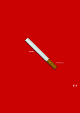 烟毒是身体的染色剂,抽去鲜活血色,导致生命蒙灰。作品通过香烟本身的色彩,来表现抽烟所能造成的危害。白色的烟身代表人体骨骼、精髓、牙齿原本的颜色,而黄色的过滤嘴则表现是因为抽烟致使上述部位(细胞)失去健康本色。